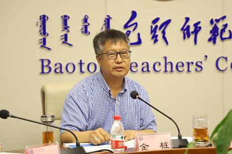 接着,金桩校长就贯彻落实党中央、国务院决策部署和自治区研究生教育会议精神从四个方面发表了重要讲话。首先,统一思想,准确认识我校研究生教育工作的发展现状。其次,提高站位,增强推动新时代研究生教育高质量发展的紧迫感和使命感。然后,夯实责任,全面推动新时代研究生教育工作各项部署落到实处。具体要求:一是要贯彻落实立德树人根本任务;二是要提升研究生教育办学规模和层次;三是要提升研究生人才培养质量;四是要坚持提升研究生培养队伍水平;五是要着力打造包师研究生教育品牌。还有,强化领导,全力推进我校研究生教育高质量发展。主要举措:一是提高政治站位,把提升质量作为发展研究生教育的核心;二是加强顶层设计,优化结构推进学科内涵式发展;三是坚持立德树人,持续打造优质研究生导师队伍;四是加强交流合作,营造研究生教育工作的良好外部环境。