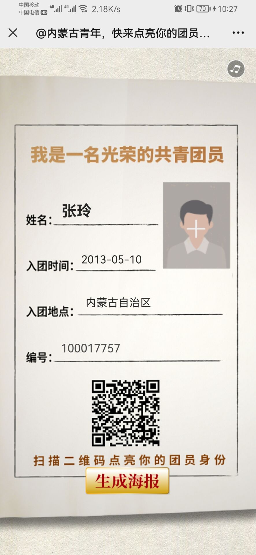 活动最后,大家通过扫码申领自己的电子团员证,再次重温入党誓词,重温加入中国共青团的真诚与信念。