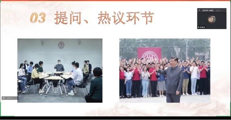 随后,在一问一答中,参会成员积极回答了共青团相关知识。结合五四青年节前夕,习近平总书记考察中国人民大学发表的重要讲话,张慧敏、王振宇、温现茹、邢婷、赵鑫五位同学分别发表了个人感想,表示作为一名在读研究生,要有明确的目标、方向,要从自身做起,不断丰富自己,要始终牢记,我们是什么样子,中国就是什么样子。青年一代要从自身做起肩负起国家复兴的大任,不断提高专业能力,提升专业素养,对社会负责,对人民服务。
